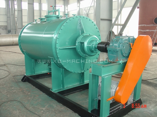 该机广泛适用于各种粘度的CMC、制药、染料、轻工食品和热敏材料、颜料等行业生产过程中的干燥,物料可以呈浆状、膏状、粒状、粉状,也可以纤维状半成品的干燥,物料从上口加入,在不断转动耙齿的搅拌下,物料随温度上升水分不断汽化(汽提装置的增加,使物料的干燥速度比原来提高3倍,溶剂的回收效率也得到相应的提高),汽化的水分由真空泵及时抽出,达到干燥目的。